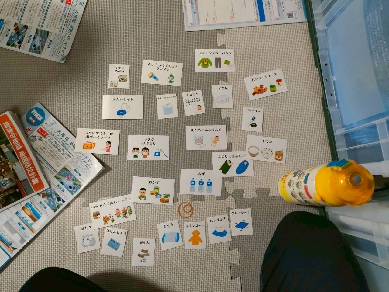 「非常用持ち出し袋をつくろう」と言う活動で使った24種類のアイテムカード